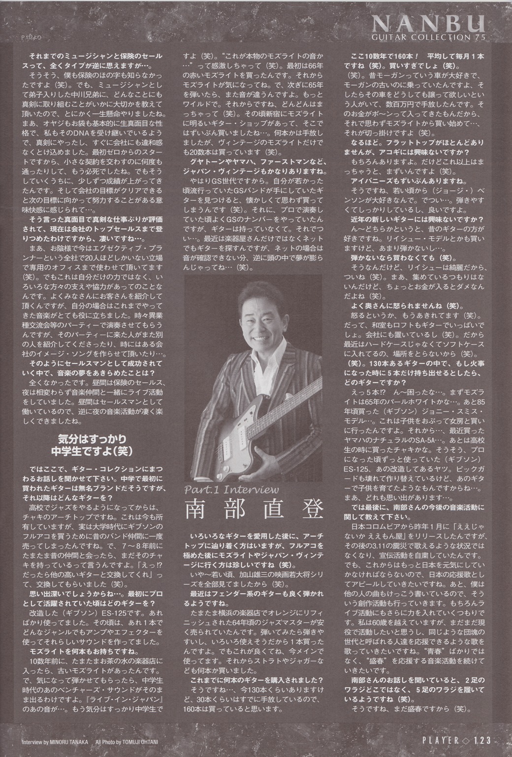 月刊Player(プレイヤー) 2012年4月号掲載 "NANBU GUITAR COLLECTION 75"